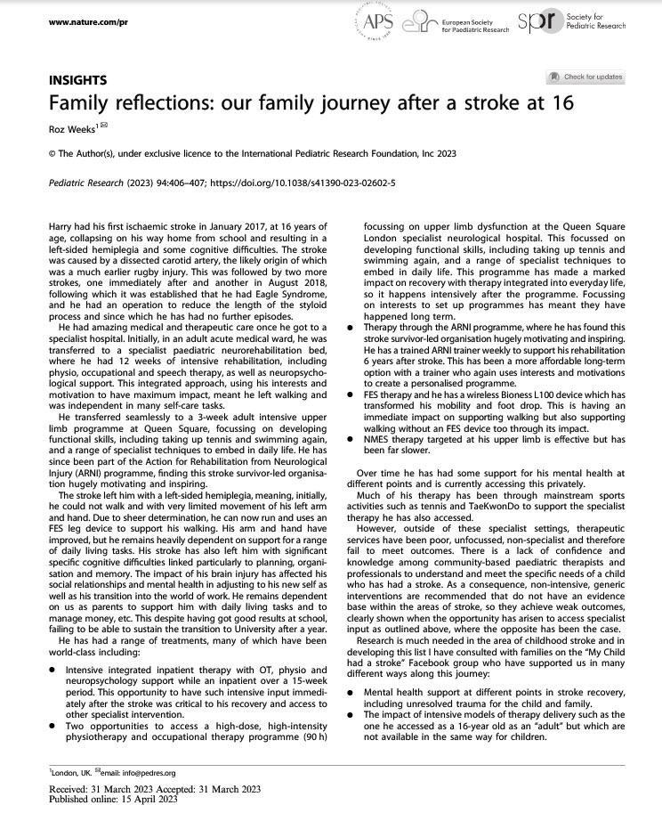 2023 ARTICLE IN (JOURNAL OF) PEDRIATIC RESEARCH BY ARNI PARENT, ROZ WEEKS